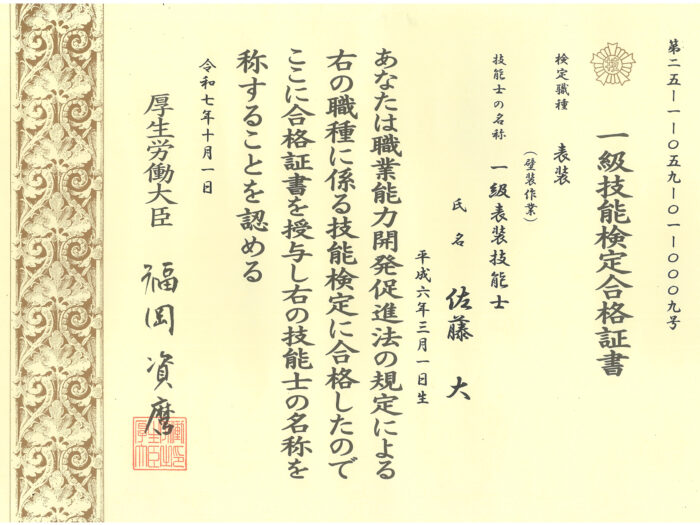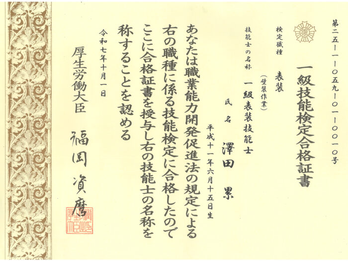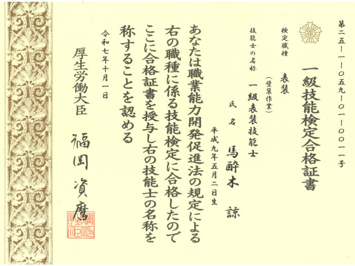 会社を挙げて1級技能士の資格取得にチャレンジしています。
